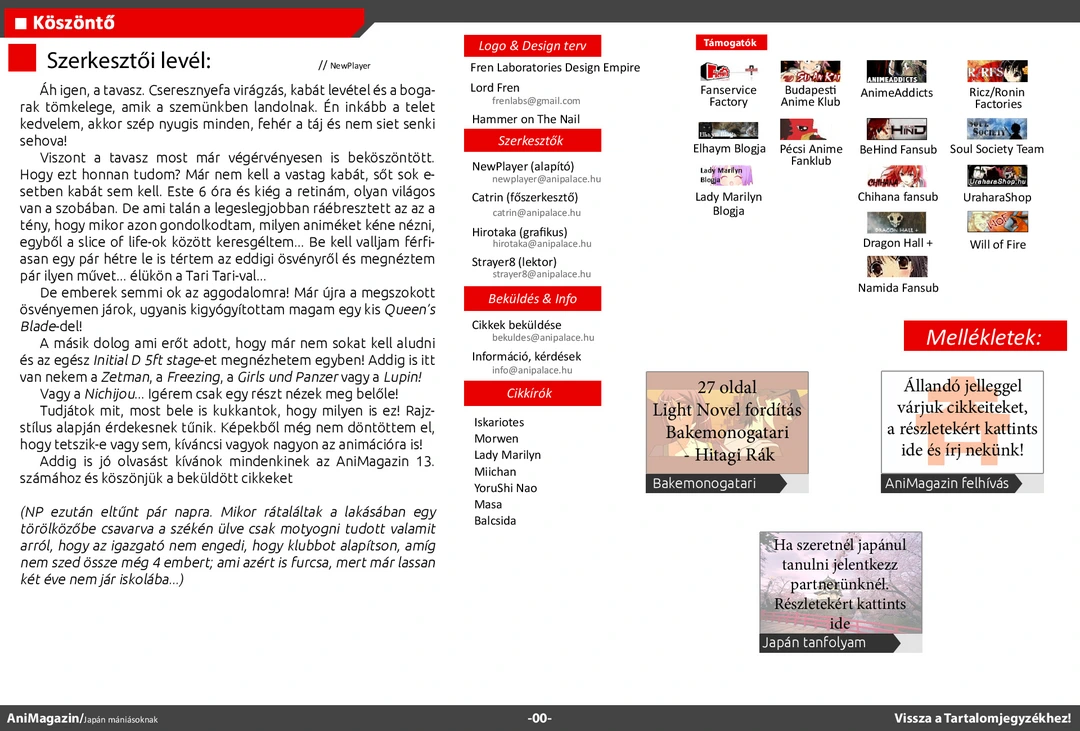 Május 16-án megjelent a magazin 13. száma. Olvassátok, véleményezzétek, jó szórakozást hozzá!