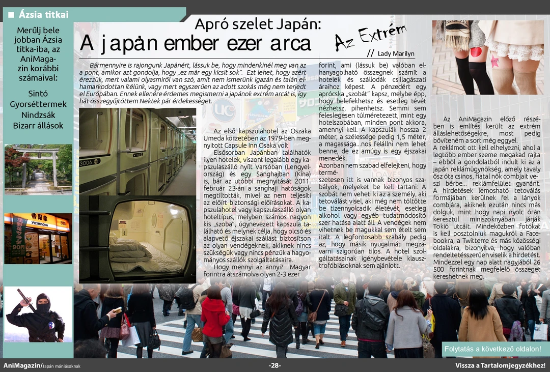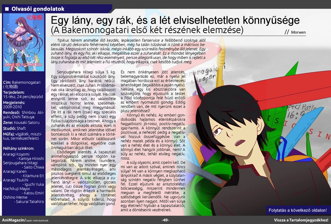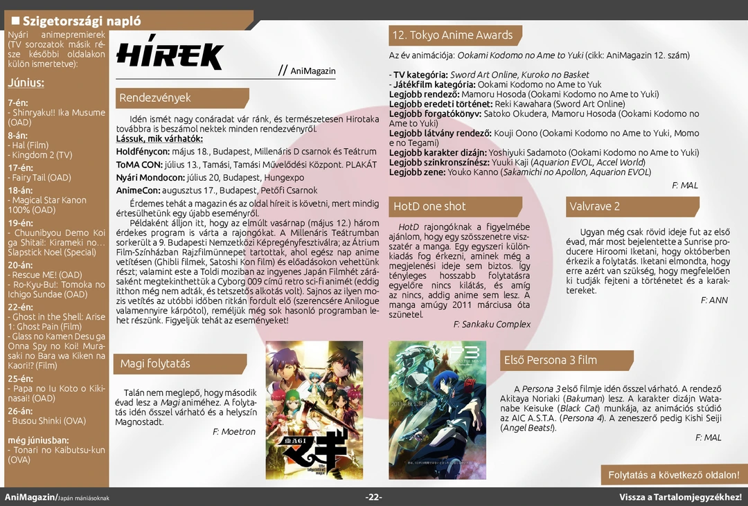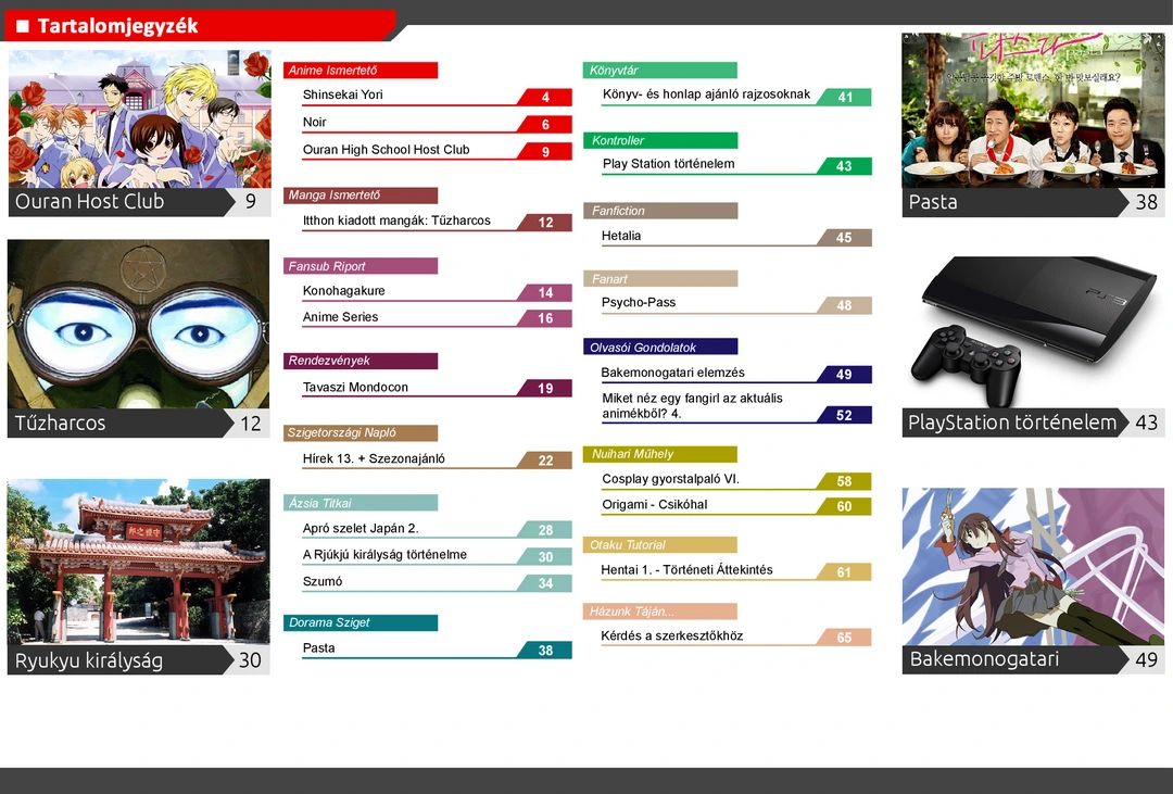 Shinsekai yori és Noir ismertető, Konohagakure és Anime Series interjú, apró szelet Japán, Rjúkjú királyság, szumó, szezon ajánlók, Bakemonogatari light novel fordítás, hentai töri, Mondocon beszámoló és rengeteg más szuper cikk várja olvasóit az ingyenes online AniMagazin legújabb számában!