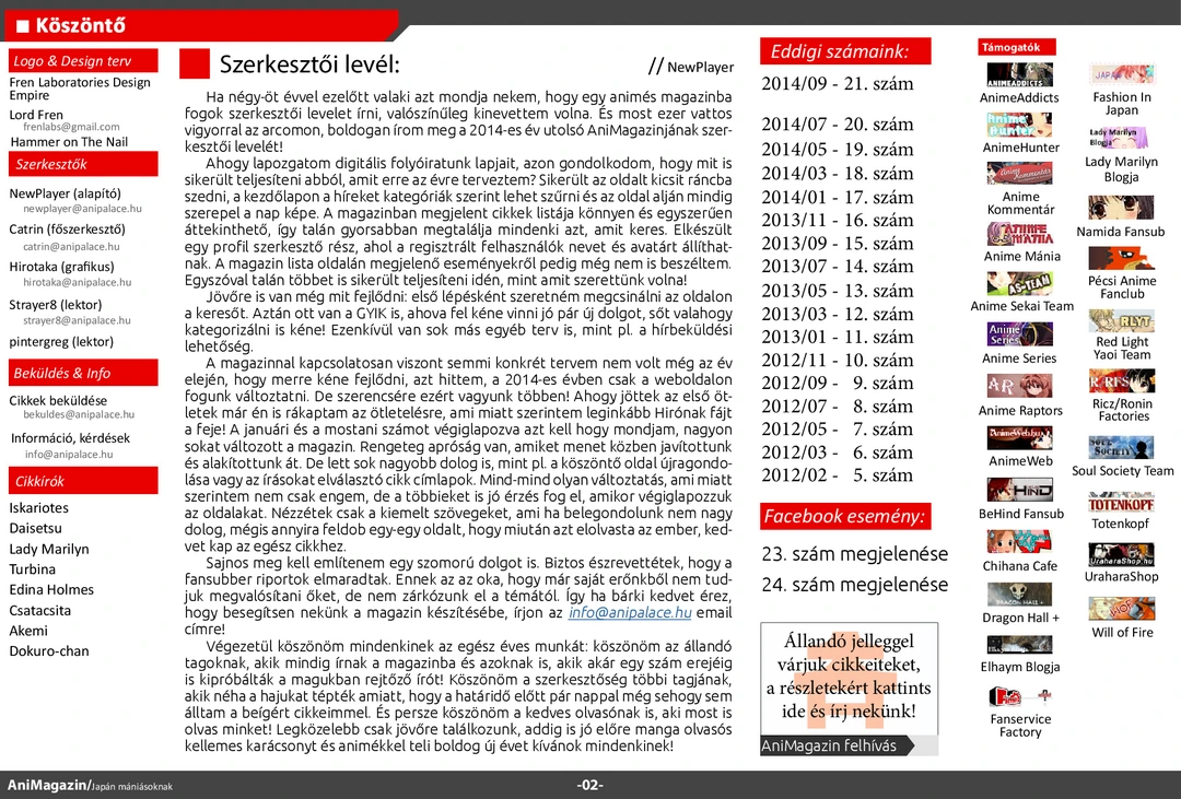 November 24-én megjelent a magazin 22. száma. Olvassátok, véleményezzétek, jó szórakozást hozzá!