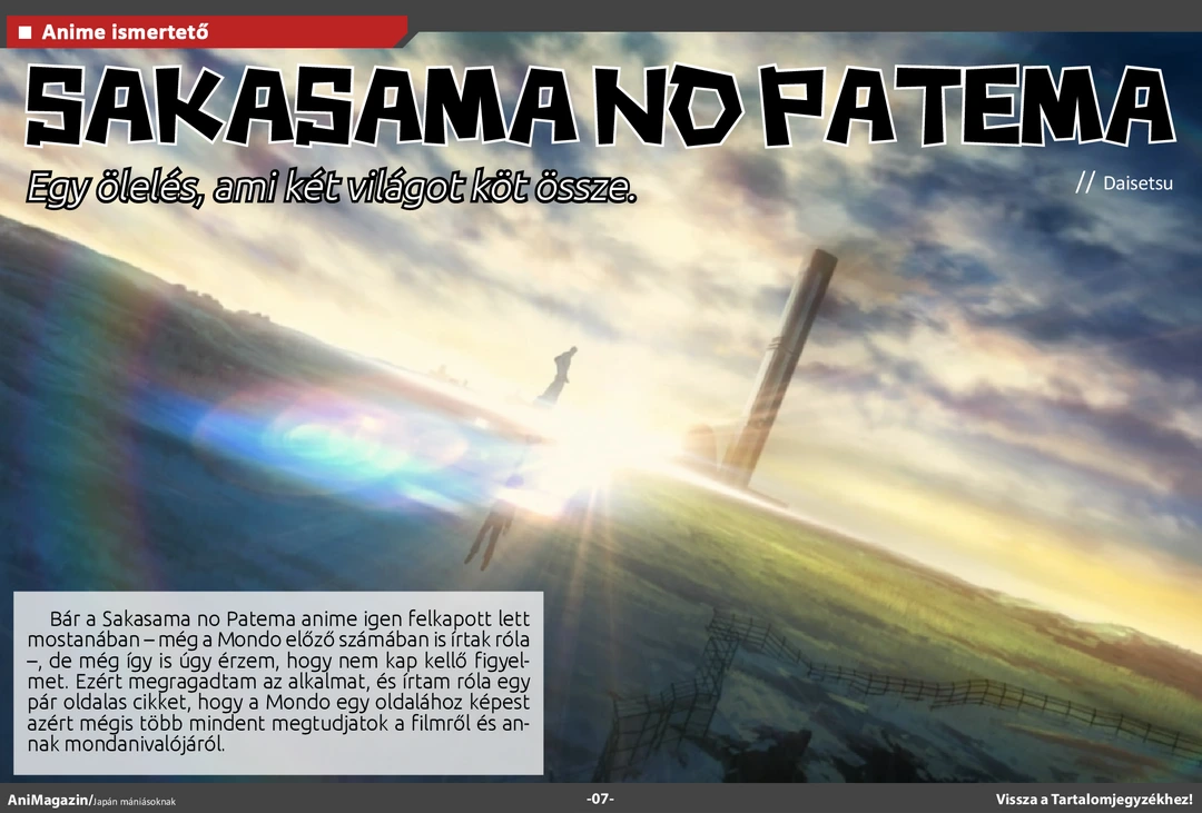 Sakasama no Patema, Iria és Monster ismertető, Mondocon beszámoló, fangirl&fanboy rovat az aktuális animékről, téli szezonajánló valamint könyv-, film- és további bemutatók az ingyenes online AniMagazin legújabb számában!