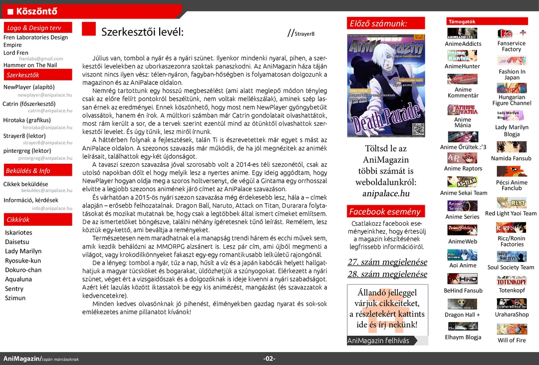 Július 22-én megjelent a magazin 26. száma. Olvassátok, véleményezzétek, jó szórakozást hozzá!