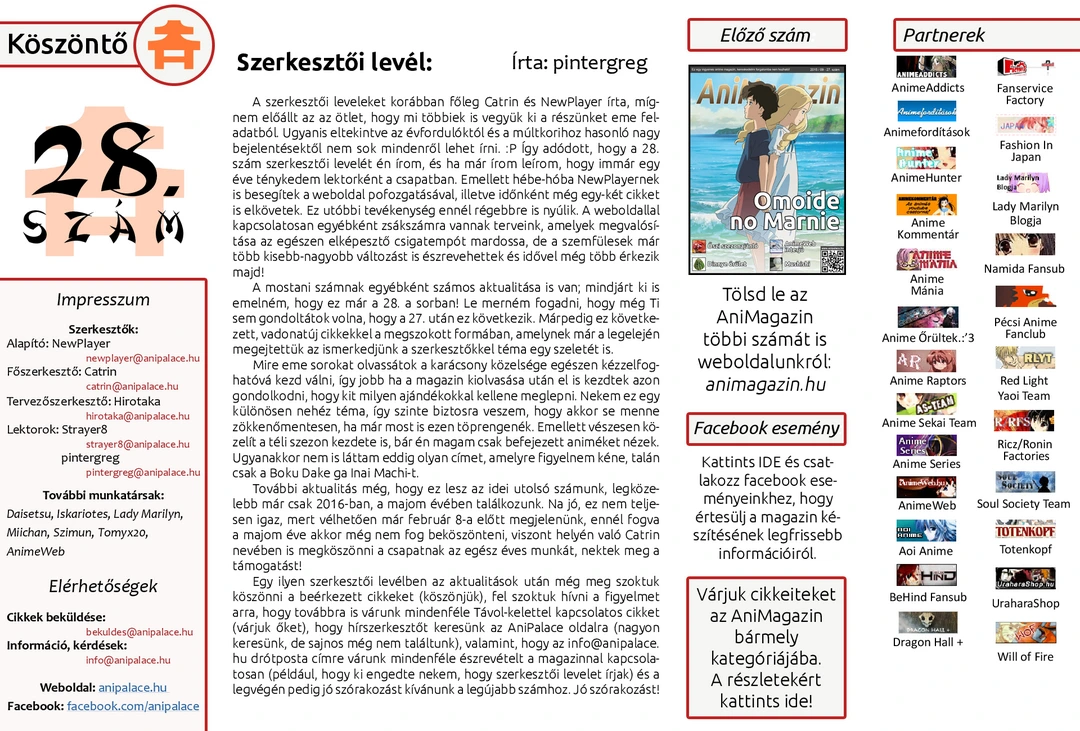 November 19-én megjelent a magazin 28. száma. Jó szórakozást hozzá!