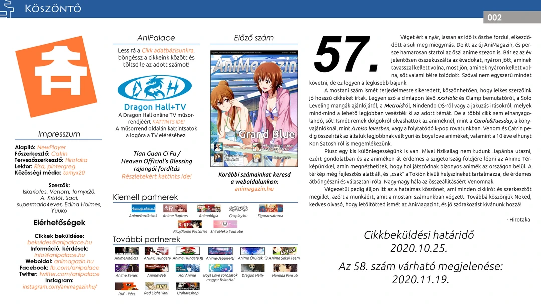 Szeptember 22-én megjelent a magazin 57. száma. Jó szórakozást hozzá!