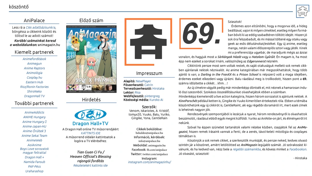 Szeptember 27-én megjelent a magazin 69. száma. Jó szórakozást hozzá!