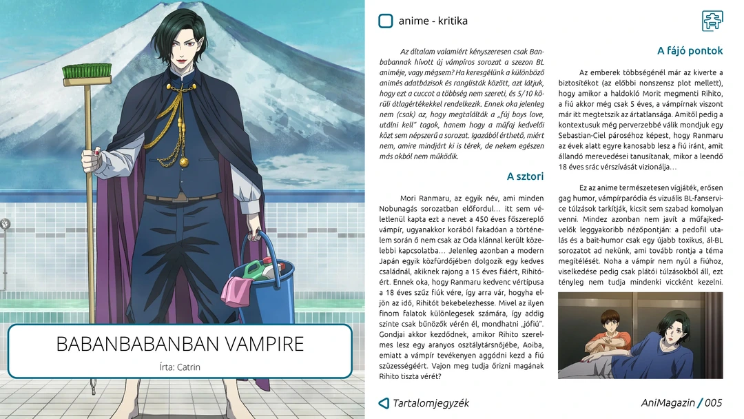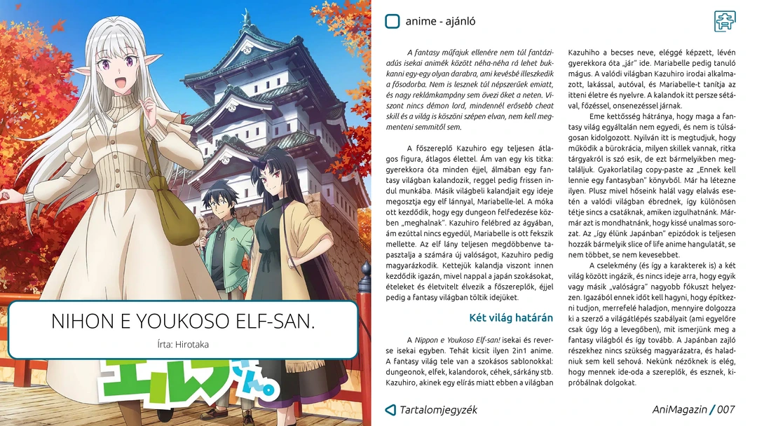 14 éves az AniMagazin, új dizájnnal! Kono Kaisha, Elf-san, Chikyuu és tavaszi szezonos anime ajánlók, Babanbabanban Vampire kritika, Sakamoto Days, Zelda és Aposimz manga, valamint Ares és Mother’s Contract Marriage manhwa ajánlók, japán filmhét és nasi történelem bemutatók, rendezvénybeszámolók és további remek cikkek az ingyenes, online AniMagazin legújabb számában!