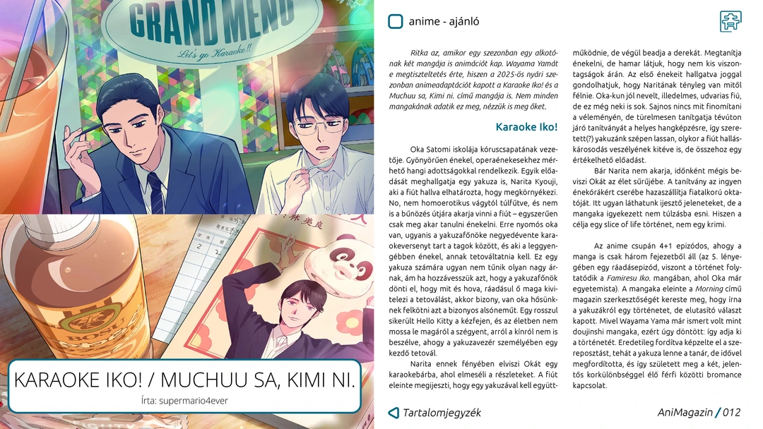 Who Made Me a Princess, Karaoke Iko! / Muchuu sa, Kimi ni., Nezha 2 és téli szezonos anime ajánlók, Uma Musume: Pretty Derby és Devil May Cry bemutatók, hazai mangakörkép, The Marshal King, Takopii no Genzai, Cesare és Sengoku mangaajánlók, Koreai Filmfesztivál, Japán filmhét és Őszi MondoCon beszámolók, interjú m00nnal, a Bor és kard balladája illusztrátorával, japán automaták története, valamint további remek cikkek az ingyenes, online AniMagazin legújabb számában!