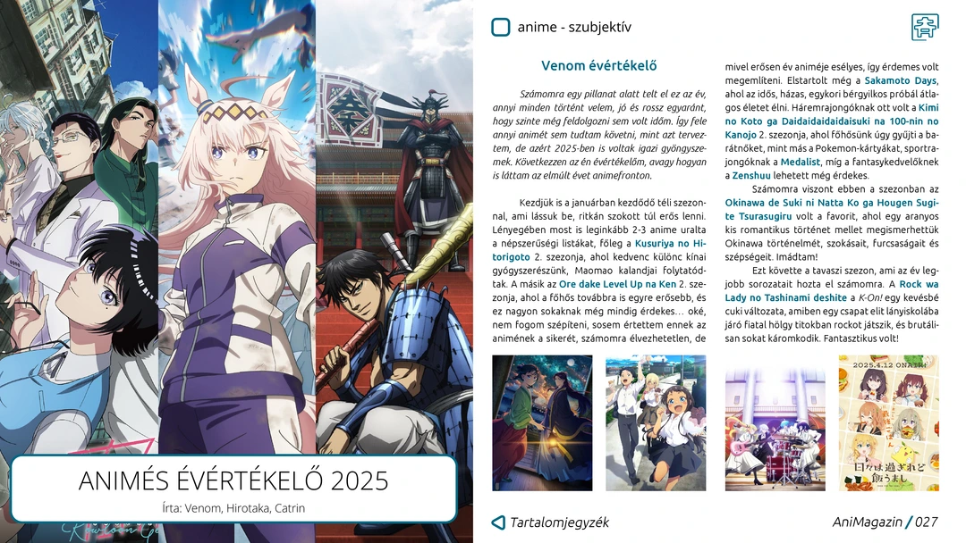 Hyakuemu., Towa no Yuugure, Shabake, Twisted Wonderland, KPop Demon Hunters és téli szezonos anime ajánlók, 2025-ös animés évértékelő, hazai manga ár-érték arány vélemény, MPD Psycho és Kon Satoshi: Opus mangaajánlók, 10Dance és The Spirealm (Kaleidoscope of Death danmei) live action bemutatók, interjú Netimával, a Guardian danmei regény fordítójával, az onsenezés története, valamint további remek cikkek az ingyenes, online AniMagazin legújabb számában!